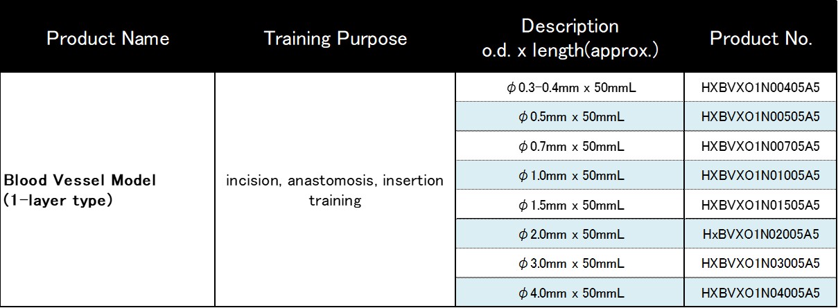 Please see the lists for blood vessel models and related products attached below and send us your inquiry (product name, specification, quantity and others) by the Inquiry Form (info@wetlab.jp).